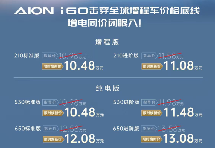 一台纯电续航200多公里、满油满电续航1000多公里的大尺寸增程SUV,埃安i60直接喊出了11万的价格。