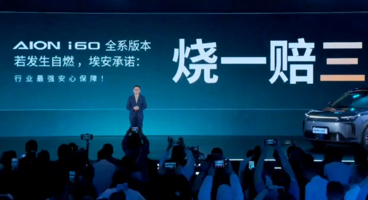另一个是自燃问题,埃安i60给出了行业唯一,也是第一个“烧一台赔三台”的承诺,这种承诺有点顶,说明埃安对自己的产品有十足的把握。